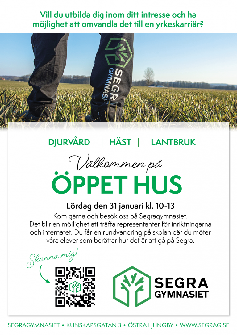 Segragymnasiet skall vara det självklara valet för ungdomar som vill utbilda sig inom Lantbruk, Hästhållning och Djurvård.